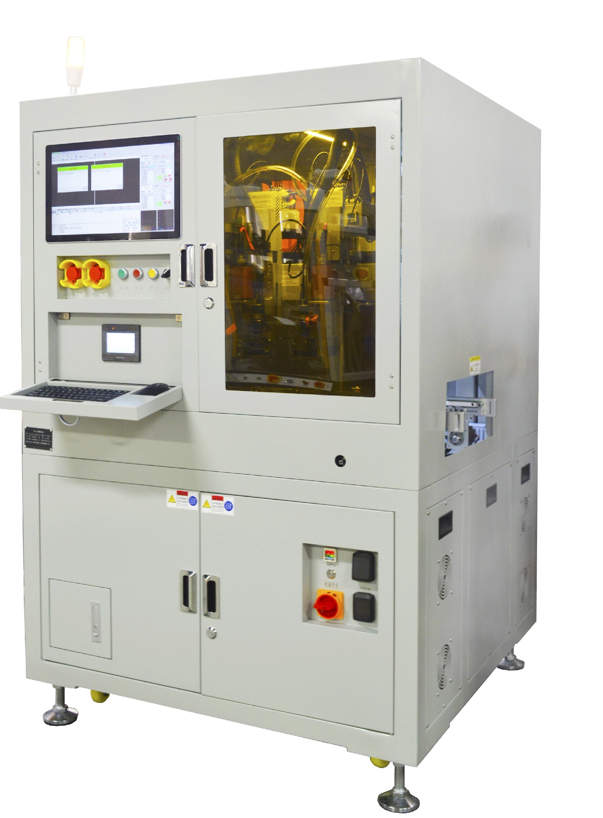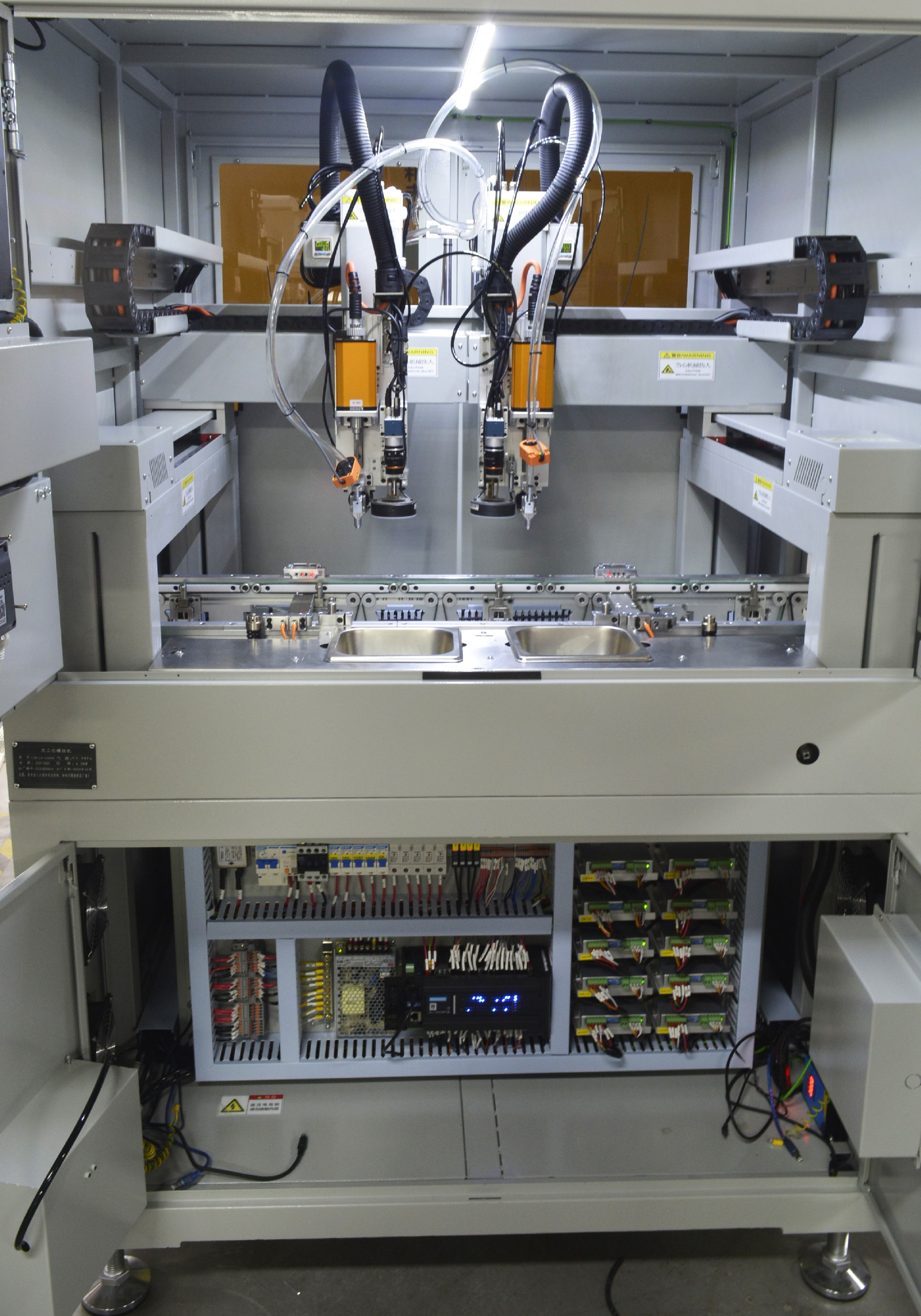 此機臺根據客戶流水線作業情況進行設計,可直接將機臺與現有流水線 對接,無需人工上下料,實現真正的無人化看管作業。常見應用范圍有 : 散 熱器晶體鎖付、數碼產品鎖付燈具照明類產品鎖付、玩具鎖付、五金產品鎖 付等。